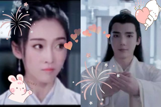 出现了江如意和魏无羡的脸,两个人对视甜笑