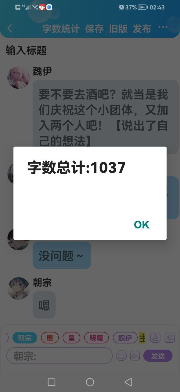 晓曦我和墨完全没有问题,星和朝宗呢?