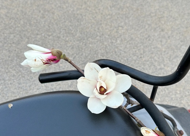 走到眼前的时候 姜乐突然从背后变出一支玉兰花 说专门给他带的 要送给他。