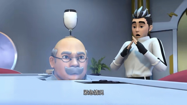 喳喳正准备偷喝,随后胡博士突然出现,把喳喳吓一跳