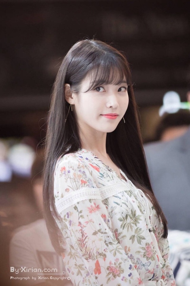 李智恩很漂亮,眼神带着她这年纪应有的天真与甜美,齐刘海显脸小,黑色的头发把她皮肤衬的白皙,碎花连衣裙不仅不显老态,反而更加甜美