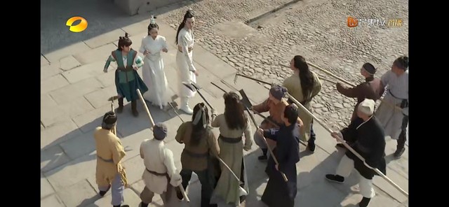 突然有一群人拿着武器走了过了梦儿立马躲在了哪吒的后面
