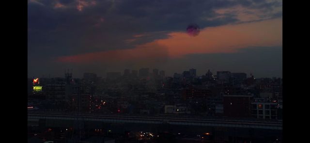 布鲁顿爆炸的瞬间天空出现了绚丽的彩虹烟花。