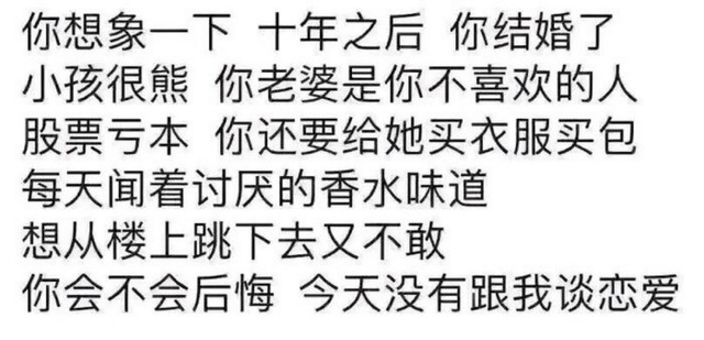 “听这话,是不是后悔十年后跟了我啊......”