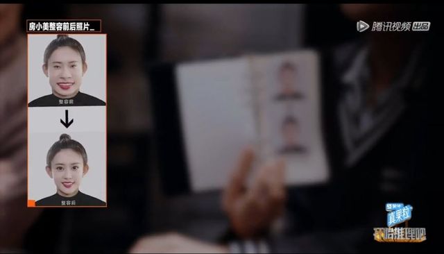 郭包佑将“整容前后对比照”竖着,示意贾小美看他手上的照片: